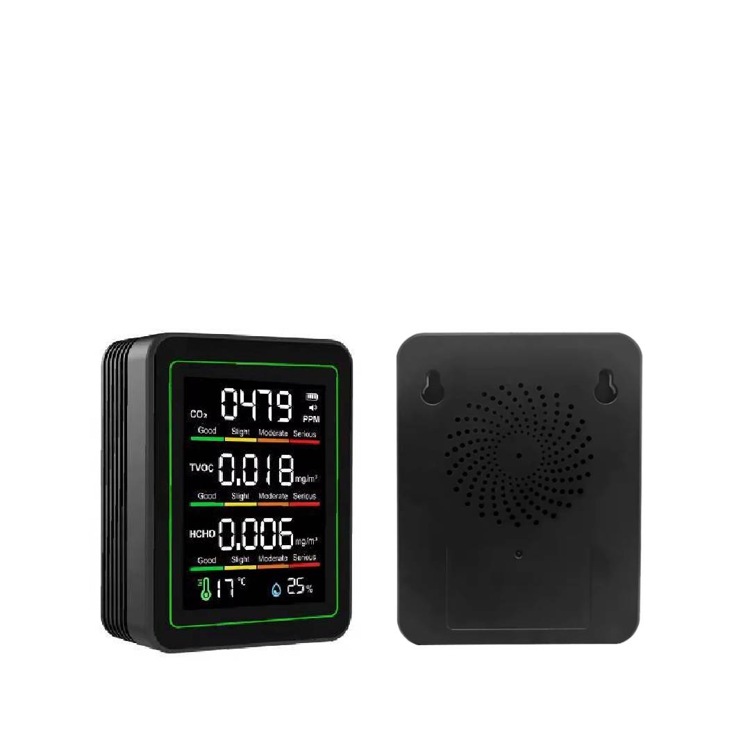 - Kontrola poziomu CO₂ – urządzenie mierzy stężenie dwutlenku węgla, który przy zbyt wysokim poziomie może powodować ból głowy, senność i problemy z koncentracją. Pomiar jakości powietrza informuje Cię, kiedy jest go za dużo i trzeba przewietrzyć pokój.